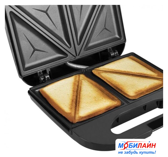 сэндвичница, 750 Вт, поверхность: форма для 2 ломтиков хлеба, черный