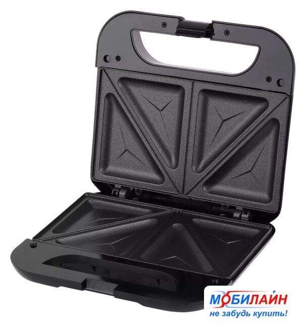 сэндвичница, 750 Вт, поверхность: форма для 2 ломтиков хлеба, черный
