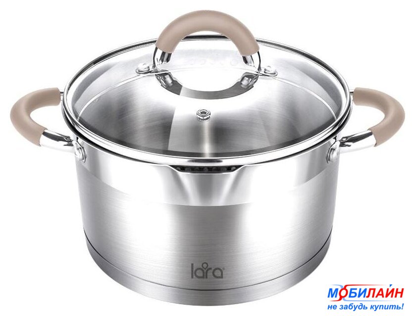 кастрюля, 3.5 л (20 см), нержавеющая сталь, покрытие отсутствует, крышка стеклянная