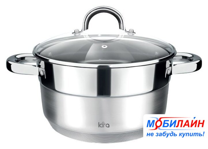 кастрюля, 4.7 л (22 см), нержавеющая сталь, покрытие отсутствует, крышка стеклянная
