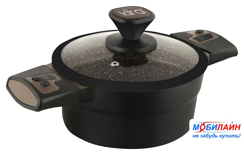 кастрюля, 2.6 л (20 см), алюминий, покрытие минеральное, крышка стеклянная