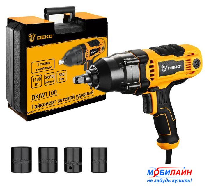 | Комплектация | - Гайковерт - 1 шт- Головки: CR-V (17мм, 19мм, 21мм, 22мм) - 4 шт- Инструкция- Кейс |