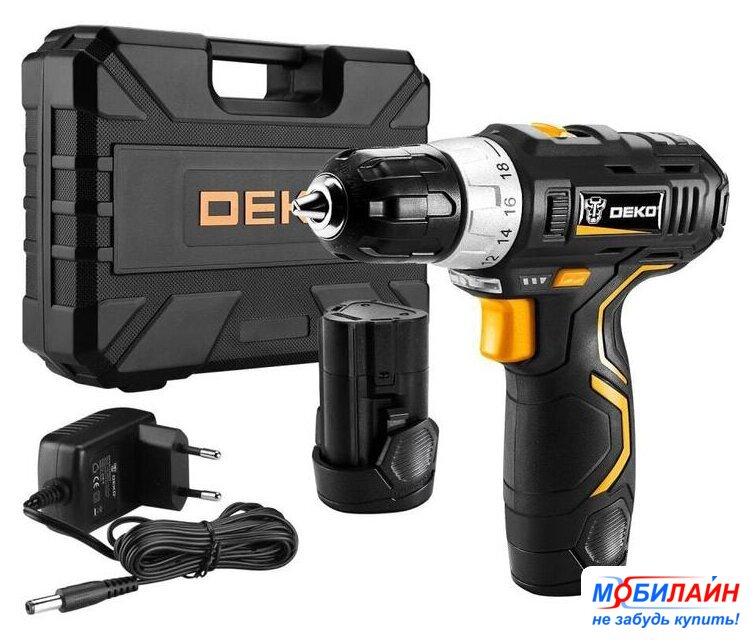 Комплектация | - Дрель-шуруповерт;- Аккумулятор - 2 шт;- Зарядное устройство;- Биты;- Держатель бит;- Сверла;- Инструкция;- Кейс. |