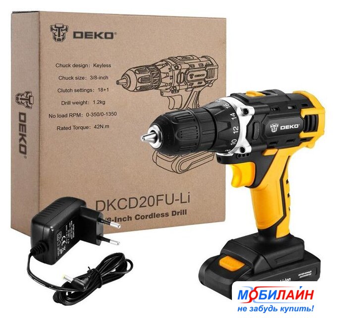 питание: аккумуляторный, Li-ion, 1350 об/мин, 42 Н·м, напряжение аккумулятора: 20 В, ёмкость аккумулятора: 1.5 А·ч, аккумулятор в комплекте, 1000 г