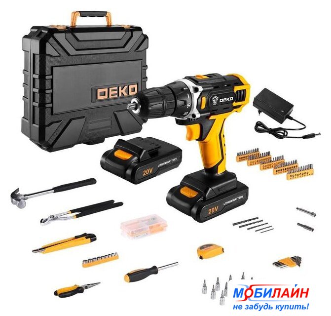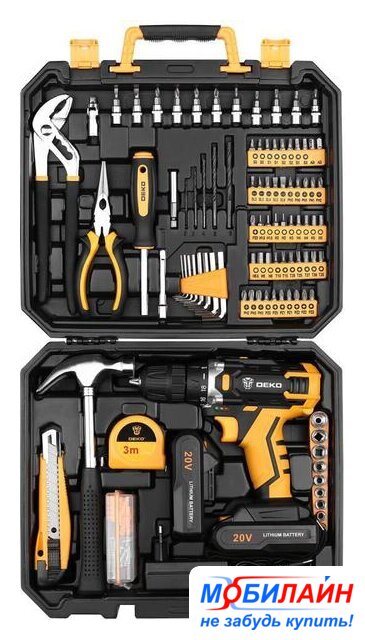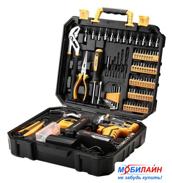 Комплектация | Дрель-шуруповерт 1 шт зарядное устройство2 шт аккумулятор11 шт 1/4" биты: SL4,5.5, PH1,2, PZ1,2, H3,4, T10,15,20,1 шт 1/4" универсальный шарнир,1 шт магнитный держатель бит 60мм,1 шт 1/4" x3 удлинитель,1 шт переставной ключ,1 шт 6" плоскогубцы,1 шт держатель бит 6,35 мм,Шестигранные ключи: 1,5-6 мм,5 шт сверла: 2,3,4,5,6мм,50 шт 25L биты: SL3,3,4,5,6, PH0,0,1,1,2,2,3,3, PZ0,0,1,1,2,2,3,3, H1,5, 1,5,2,2,3,4,4,5,5,5,5,6,6, T10,15,20,25,27,30,35, S0,0,1,1,2,2,3, 3, AD, AD, 9 шт. 1/4" розетки: 5,6,7,8,9,10,11,12,13 мм,1 шт измерительная лента 3м,1 шт молоток,1 шт строительный нож 18мм,103 шт крепежКейс |