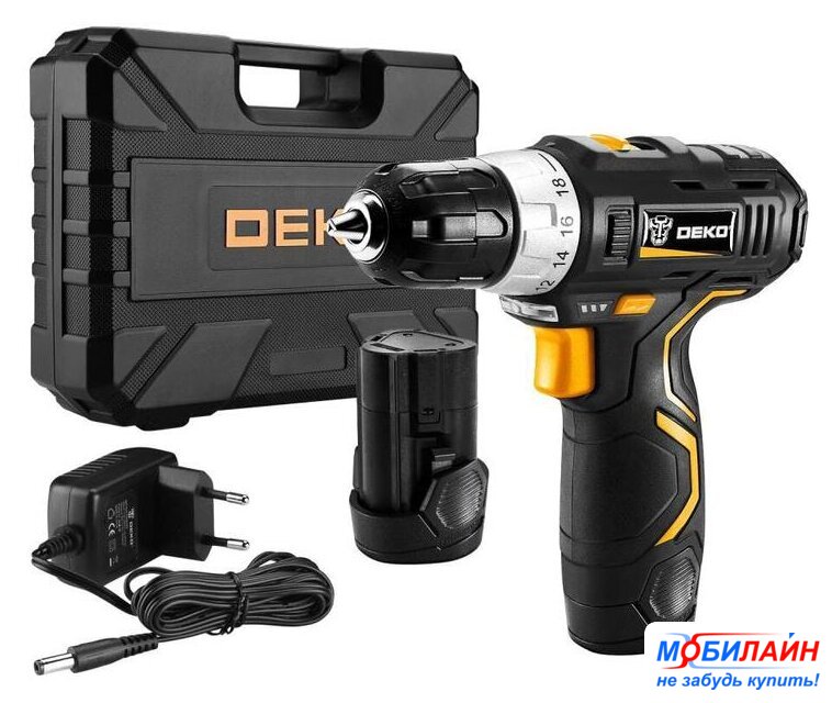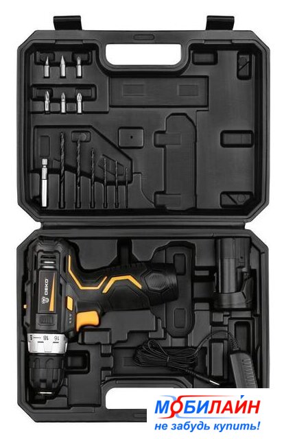 Комплектация | - Дрель-шуруповерт;- Аккумулятор - 2 шт;- Зарядное устройство;- Биты - 6 шт;- Держатель бит;- Сверла - 6 шт;- Инструкция;- Кейс. |