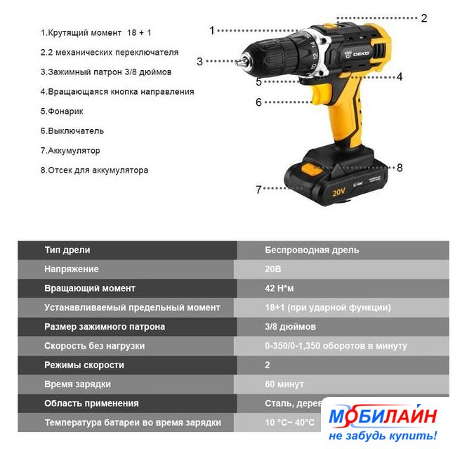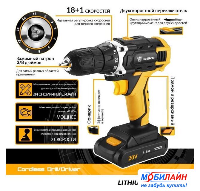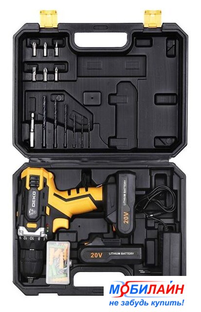 Комплектация | Дрель-шуруповерт - 1 шт.Аккумулятор - 2 шт.Зарядное устройство - 1 шт.ИнструкцияКейсБиты - 6 штСверла - 6 штУдлинитель бит - 1 штНабор крепежа - 50 шт |