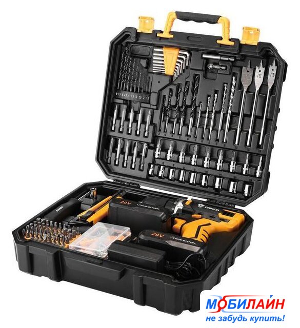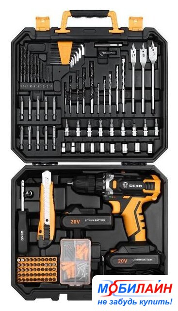 Комплектация | Дрель-шуруповерт;Аккумулятор - 2 шт;Зарядное устройство;Инструкция;Кейс;Поставляется с набором в 104 предмета:Шестигранные ключи (1,5 - 6 мм) - 8 шт;Зенковочная бита (6,35 мм) - 1 шт;Магнитный держатель бит (60мм) - 1 шт;Витые свёрла (1.5,2,2.5,3,3.5,4,4.5,5,5.5,6 мм) - 10 шт;Деревообрабатывающие сверла (3,4,5,6,8 мм) - 5 шт;Свёрла для обработки камня (3,4,5,6,8 мм) - 5 шт;Плоские свёрла (13,16,19 мм) - 3 шт;Биты 50L (SL4,5,6, PH0,1,2,3 T15,20,A.D.) - 10 шт;Торцовочные биты (SL4,5.5,PH1,2,PZ1,2,H3,4,5) - 9 шт;Гнёзда 1/4" (5,6,7,8,9,10,11,12,13 мм) - 9 шт;Подвесной стержень 1/4" - 1 шт;Фиксатор гнёзд 1/4" - 1 шт;Универсальные резцы - 1 шт;Биты 25L (SL3,3,4,5,6, PH0,0,1,1,2,2,3,3, PZ0,0,1,1,2,2,3,3, H1.5,1.5,2,2,3,4,4,5,5,5.5,6,6, T10,15,20,25,27,30,35, S0,0,1,1,2,2,3,3,AD,AD) - 50 шт;Крепежи - 79 шт. |