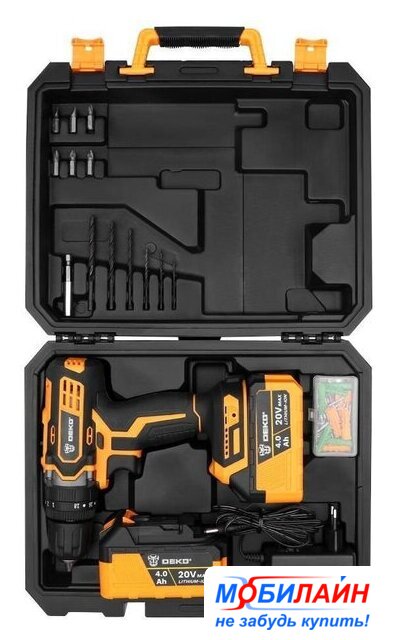 Комплектация | Дрель-шуруповерт ударная - 1 шт.Аккумулятор 4,0 Ач - 2 шт.Зарядное устройство - 1 шт.Сверла (2, 2.5, 3, 4, 5, 6 мм) - 6 шт.Биты (SL4, 6, PH1, 2, PZ1, 2) - 6 шт.Магнитный удлинитель (60 мм) - 1 шт.Крепеж - 50 шт.ИнструкцияКейс |