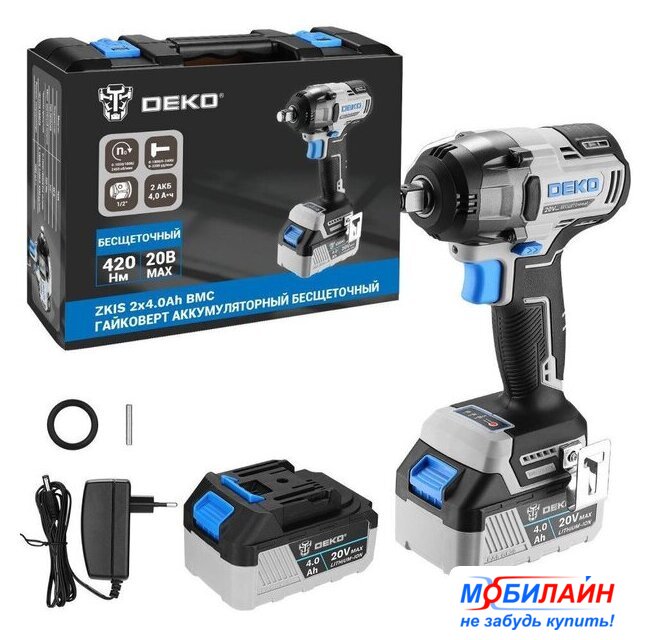 питание: аккумуляторный, Li-ion, 2450 об/мин, 400 Н·м, напряжение аккумулятора: 20 В, ёмкость аккумулятора: 4 А·ч, аккумулятор в комплекте, 1150 г