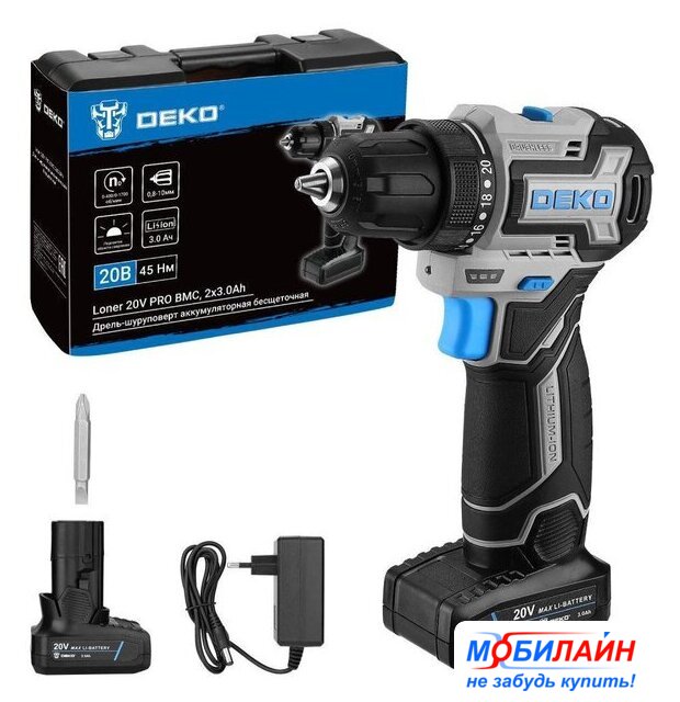| Комплектация | - Дрель-шуруповерт - 1 шт.- Аккумулятор 3,0 Ач - 2 шт.- Зарядное устройство - 1 шт.- Двухсторонняя бита – 1 шт.- Инструкция- Кейс |