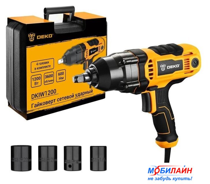 | Комплектация | - Гайковерт - 1 шт- Головки CR-V- 4 шт (17мм, 19мм, 21мм, 22мм)- Угольные щетки - 2 шт- Кейс - 1 шт- Руководство по эксплуатации - 1 шт |