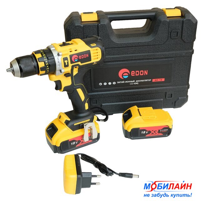 | Комплектация | - Шуруповерт- 2 аккумулятора- Зарядное устройство- Пластиковый кейс- Различные биты – 6 шт.;- Головки – 5, 6, 7, 8, 9, 10, 11, 12, 13 мм.;- Переходник – 2 шт.;- Сверла по дереву – 4, 5, 6 мм.;- Сверла по металлу - 4, 5, 6 мм.;- Гибкий удлинитель 25 см. – 1 шт. |