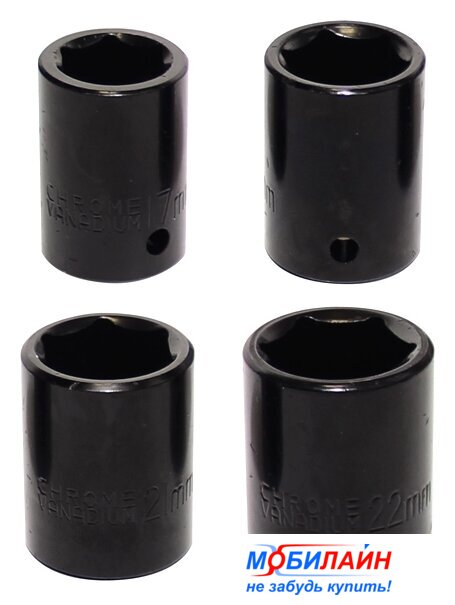 | Набор принадлежностей | (набор торцевых головок: 17, 19, 21 и 22 мм) |