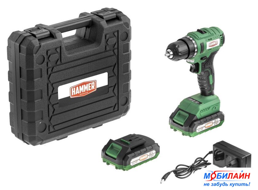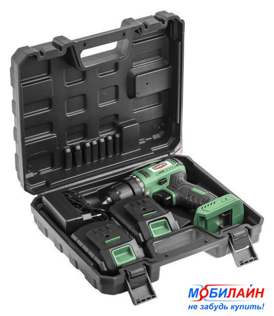 | Комплектация | Дрель-шуруповерт - 1 шт.Зарядное устройство - 1 шт.Аккумулятор 2,0 Ач - 2 шт.Кейс |