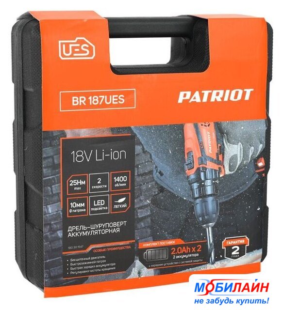| Комплектация | - Аккумуляторная дрель-шуруповерт;- Аккумуляторная батарея - 2 шт;- Зарядное устройство;- Кейс;- Инструкция с гарантийным талоном. |