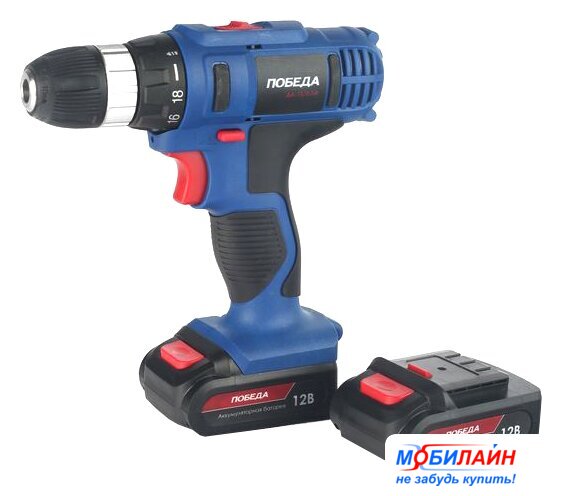 питание: аккумулятор, Li-ion, 1250 об/мин, напряжение аккумулятора: 12 В, ёмкость аккумулятора: 2 А·ч
