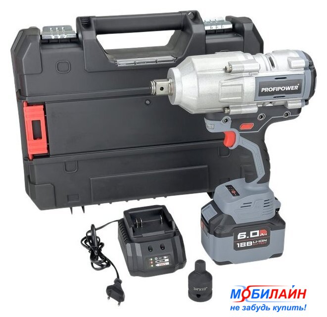 | Комплектация | - Гайковерт - 1 шт- Адаптер переходник - 1 шт- Аккумулятор 6.0 Ач - 1 шт- Зарядное устройство - 1 шт- Кейс - 1 шт |