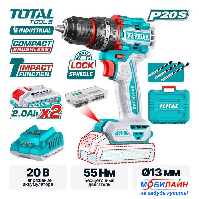 Комплектация | - Бесщеточная дрель-шуруповерт - 1 шт.- Аккумулятор 2,0 Ач TFBLI20011 - 2 шт.- Зарядное устройство 2,0 А TFCLI2001 - 1 шт.- Сверло по металлу - 3 шт.- Набор акксессуаров - 47 шт.- Инструкция- Кейс |