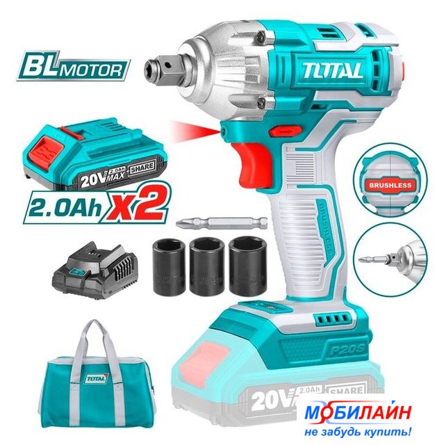 | Комплектация | Гайковерт - 1 шт.Аккумулятор 2,0 Ач - 2 шт.Зарядное устройство - 1 шт.Торцевая головка (17, 19, 21 мм) - 3 шт.Бита - 1 шт.ИнструкцияСумка |
