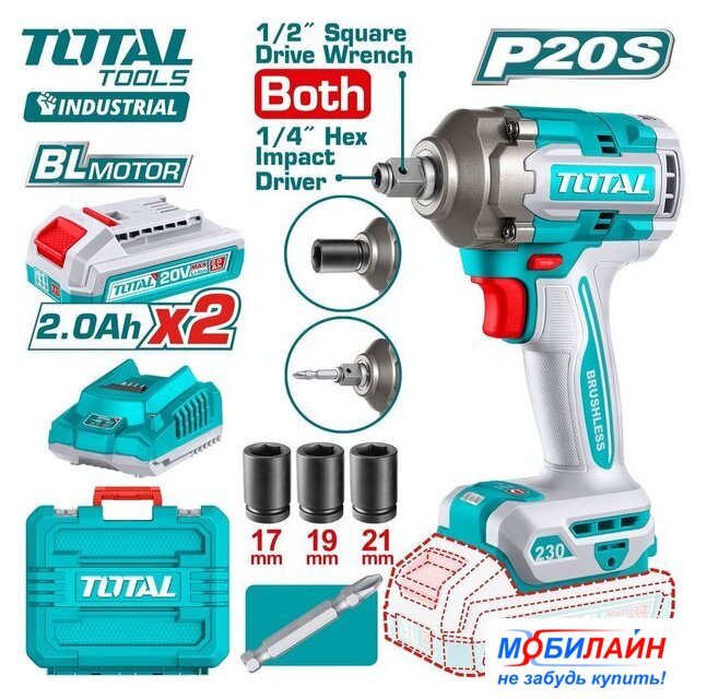 Комплектация | - Гайковерт - 1 шт.- Аккумулятор 2,0 Ач TFBLI20011 - 2 шт.- Зарядное устройство TFCLI2001 - 1 шт.- Торцевая головка (17, 19, 21 мм) - 3 шт.- Инструкция- Кейс |