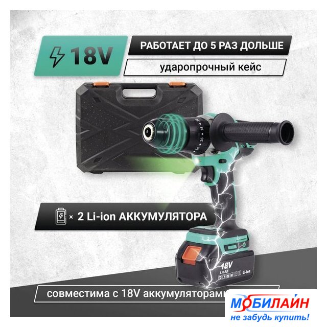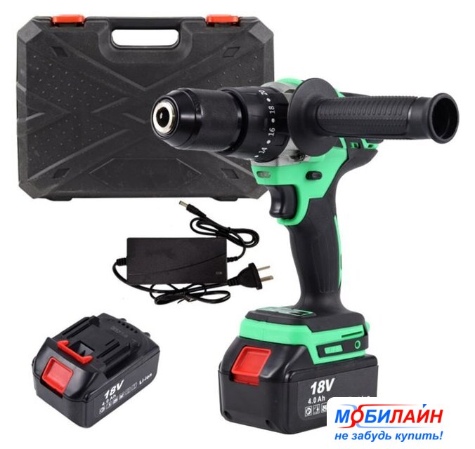 Комплектация | - Дрель-шуруповерт;- 2 аккумулятора;- Зарядное устройство;- Кейс. |