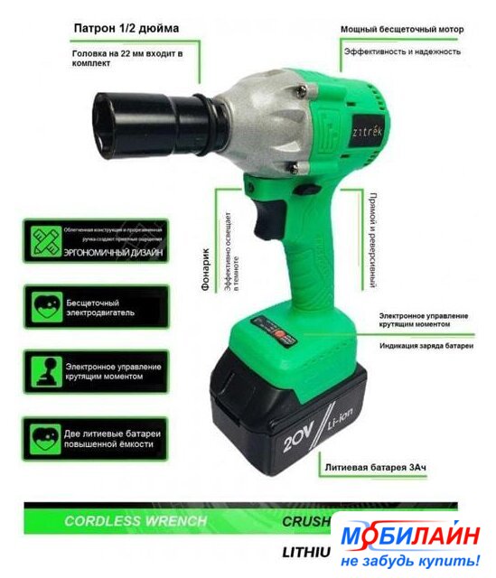 питание: аккумуляторный, Li-ion, 2200 об/мин, 650 Н·м, напряжение аккумулятора: 20 В, без аккумулятора в комплекте