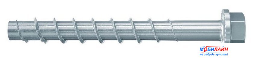 50 в упаковке, длина 60 мм, диаметр резьбы 10 мм, для бетона, головка шестигранная, с прессшайбой, наконечник плоский