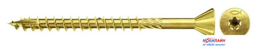 100 в упаковке, длина 100 мм, диаметр резьбы 5 мм, для дерева, головка потайная, шлиц TORX, наконечник острый