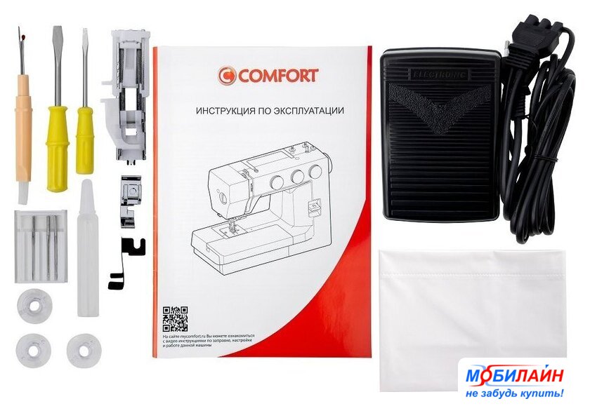 Комплектация | инструкция, распарыватель/кисточка, комплект игл (3 шт.), шпулька (3 шт.), масленка, отвертка, педаль (реостатная) |