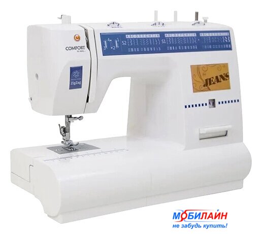электромеханическая, вертикальный качающийся челнок, полуавтоматическое выполнение петли, швейные операции: имитация оверлочной строчки/потайная строчка/трикотажная строчка/декоративная строчка