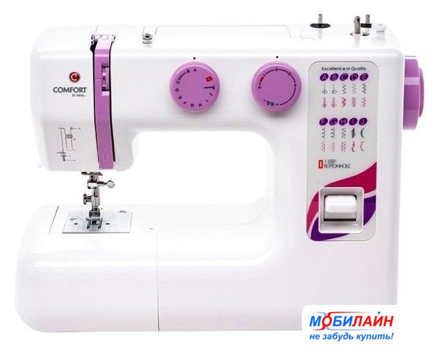 электромеханическая, вертикальный качающийся челнок, полуавтоматическое выполнение петли, швейные операции: имитация оверлочной строчки/потайная строчка/трикотажная строчка/декоративная строчка