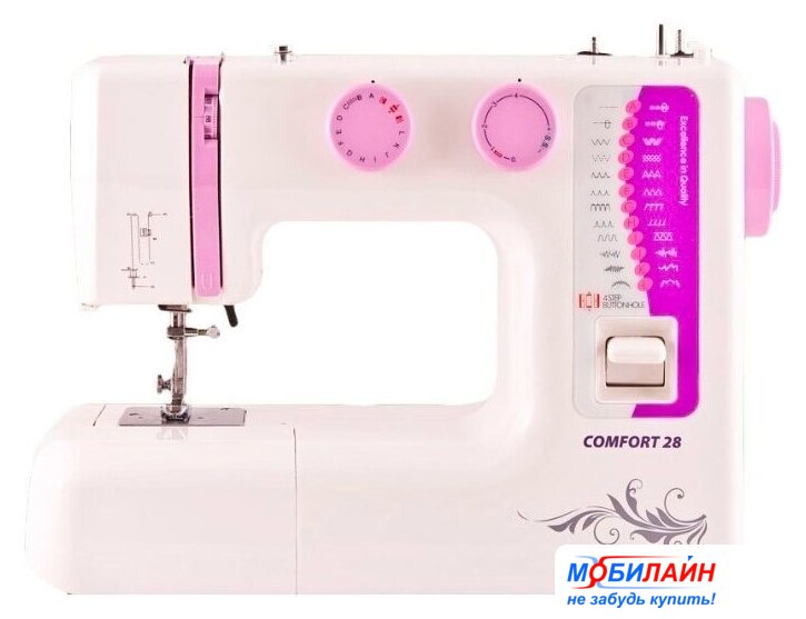 электромеханическая, вертикальный качающийся челнок, полуавтоматическое выполнение петли, швейные операции: имитация оверлочной строчки/потайная строчка/трикотажная строчка/декоративная строчка