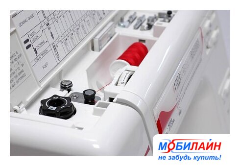 электромеханическая, вертикальный качающийся челнок, автоматическое выполнение петли, швейные операции: имитация оверлочной строчки/потайная строчка/трикотажная строчка/декоративная строчка