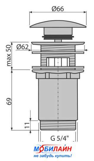 для ванны/для поддона, полипропилен, слив 50 мм, труба 50 мм, гидрозатвор, цвет крышки: белый