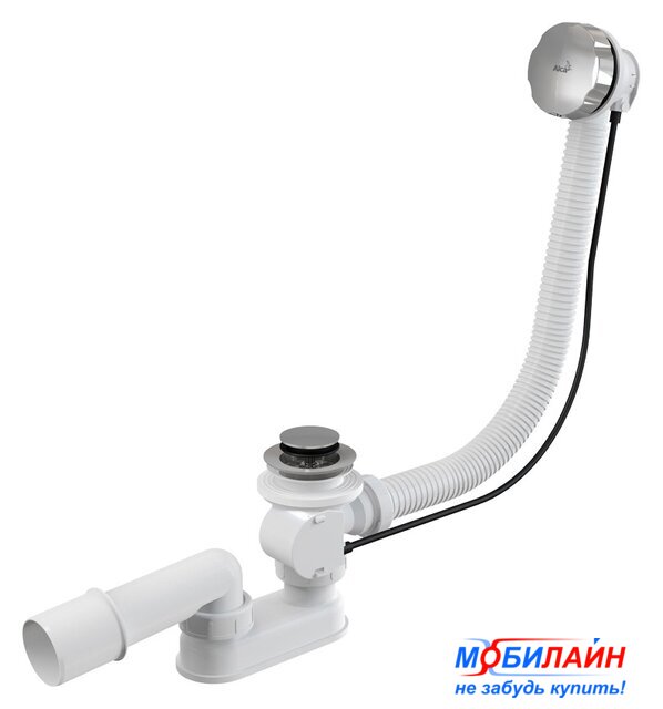 для ванны, трубный, полипропилен, труба 40 мм/50 мм, гидрозатвор, сливная решетка, цвет крышки: белый