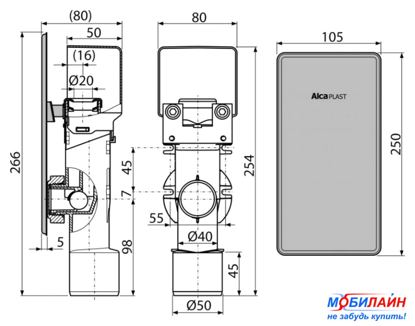 душевой трап, бутылочный, полипропилен, труба 50 мм, комбинированный, сливная решетка, цвет крышки: черный