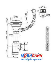 для мойки, полипропилен, труба 40 мм/50 мм, гидрозатвор