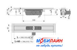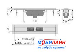для душа, полипропилен/сталь, труба 40 мм, длина 810 мм, гидрозатвор