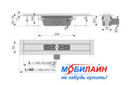 для душа, пластик, труба 40 мм, длина 850 мм, сливная решетка, цвет крышки: нержавеющая сталь