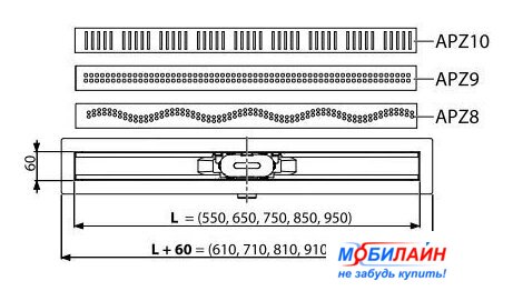 для душа, пластик/сталь, труба 40 мм, длина 550 мм, сливная решетка, цвет крышки: черный