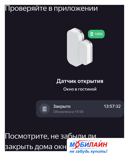 Комплектация | датчик открытия дверей и окон, руководство пользователя, стикеры для монтажа |