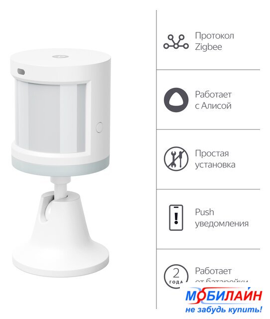 соединение ZigBee, управление через Яндекс Алиса, размещение внутри помещения, питание: батарейка