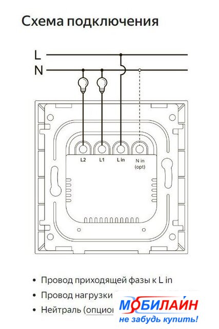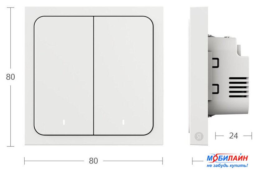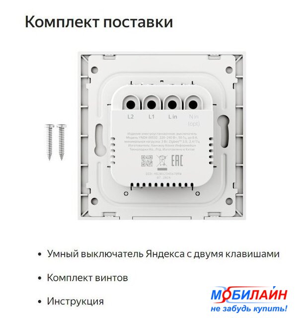Комплектация | Умный выключатель Яндекса с двумя клавишамиКомплект винтовИнструкцияДокументы |
