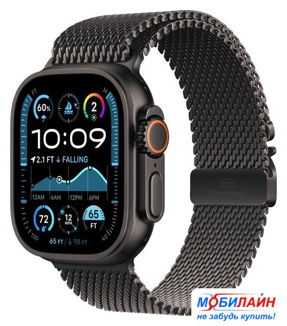 синхронизация с iOS, экран OLED, поддержка SIM-карты: eSIM, пульсометр, измерение кислорода в крови, ЭКГ, AOD, GPS, Bluetooth 5.3, корпус: металл (титан), ремешок: силикон