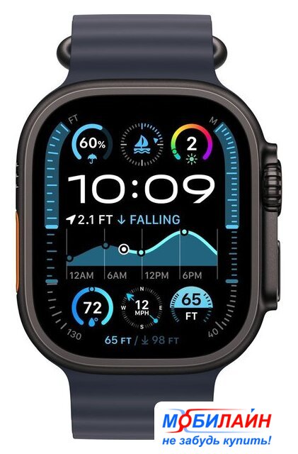 синхронизация с iOS, экран OLED, поддержка SIM-карты: eSIM, пульсометр, измерение кислорода в крови, ЭКГ, AOD, GPS, Bluetooth 5.3, корпус: металл (титан), ремешок: силикон