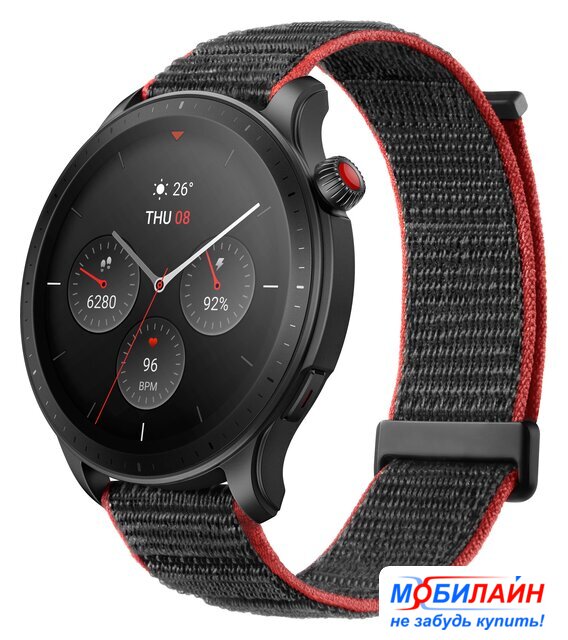 часы-компаньон, поддержка Android/iOS, экран AMOLED 1.75" (390x450, сенсорный), шагомер, пульсометр, время работы: 4 недели 2 суток, корпус: пластик/алюминий, браслет: фторэластомер