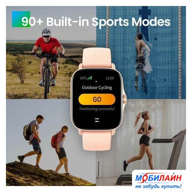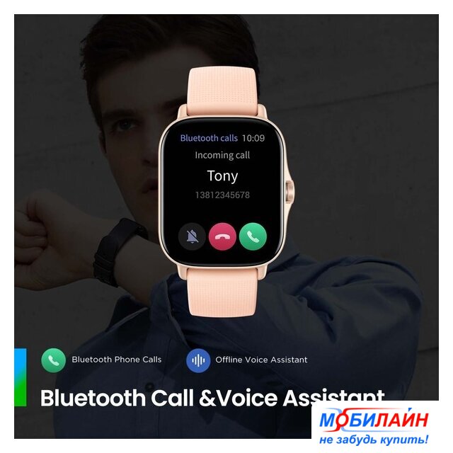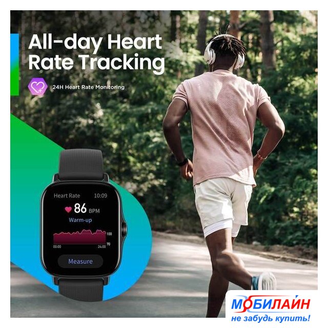 часы-компаньон, поддержка Android/iOS, экран AMOLED 1.75" (390x450, сенсорный), шагомер, пульсометр, время работы: 4 недели 2 суток, корпус: пластик/алюминий, браслет: фторэластомер
