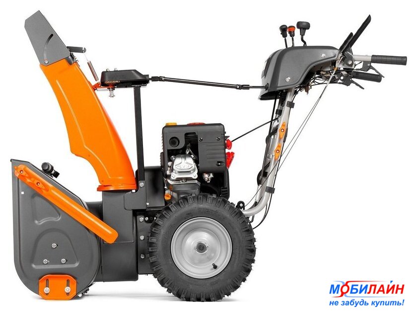 самоходный, бензиновый двигатель 9 л.с., захват 67x55 см, выброс на 15 м