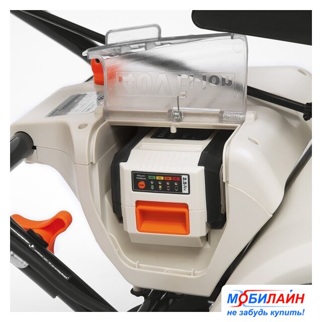 ручной, аккумуляторный двигатель, захват 46x25.4 см, выброс на 6 м